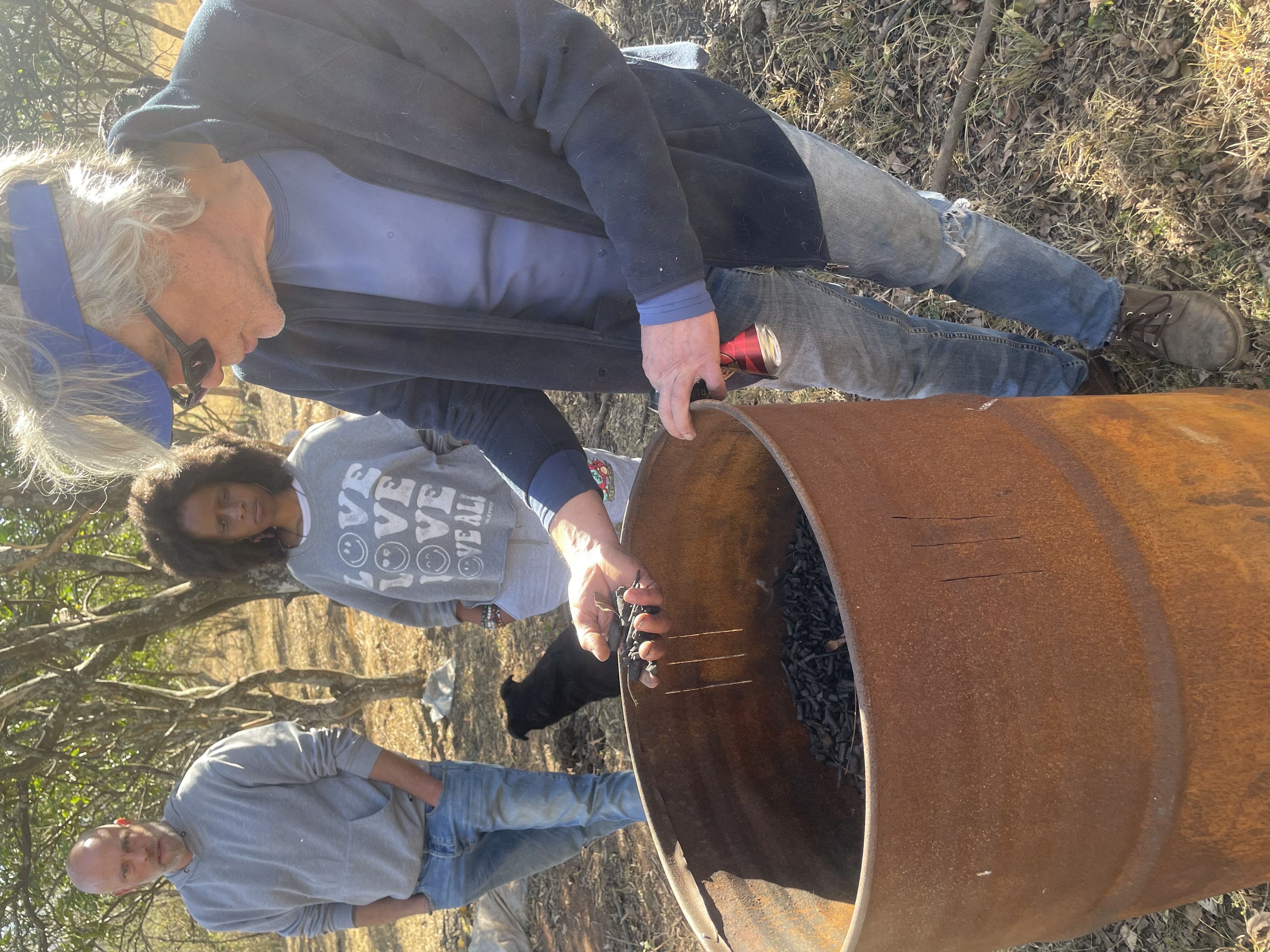 Philip led us through his large, expansive garden, with mountains rising behind it like ancient guardians. He then took us into his biochar shed, where he demonstrated his process with the enthusiasm of someone still enchanted by the work. Standing beside barrels and steaming piles of carbonised biomass, he looked like an inventor in his element—part scientist, part farmer, part ecological philosopher. His passion was unmistakable as he explained how biochar can restore soil health, retain moisture, and revive landscapes damaged by decades of monoculture forestry.
